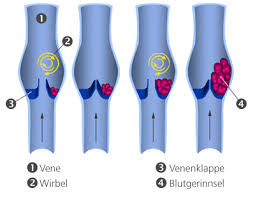 Da sich ein Thrombus von der Venenwand lösen und mit dem Blutstrom zum Gehirn oder zur Lunge getragen werden kann. Stärker sichtbare Hautvenen sogenannte Warnvenen leichtes Fieber.